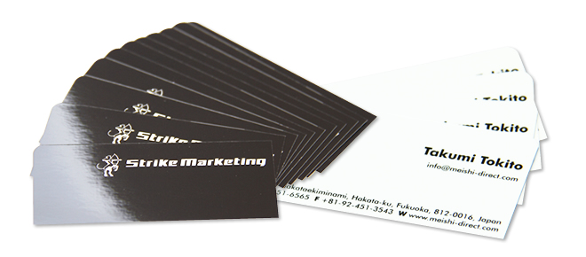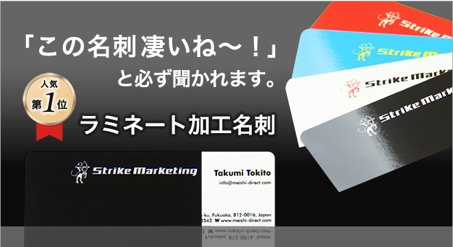 私が使っている名刺も「ラミネート加工」の名刺です。